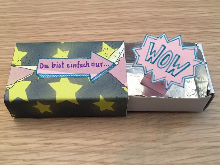 Du kannst Grußschachteln aus Streichholzschachteln machen oder aus einer Klopapierrolle.