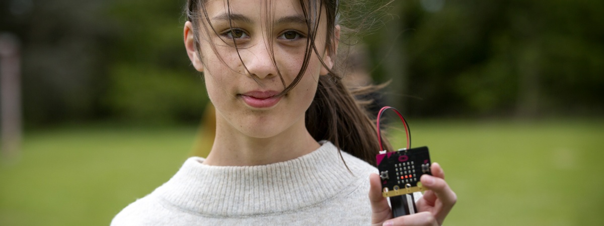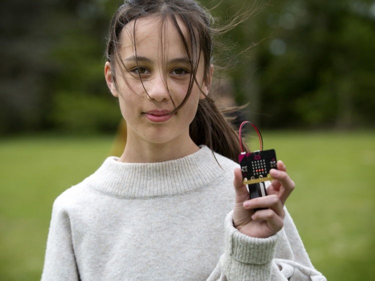 Wie das funktioniert, das lernen die Kinder vorab, wenn sie am Laptop über ein Programmierprogramm dem Chip sagen, worauf und wie er reagieren soll. Dieses Programm wird dem Mikrobit anschließend aufgespielt – und das Fangspiel kann beginnen.